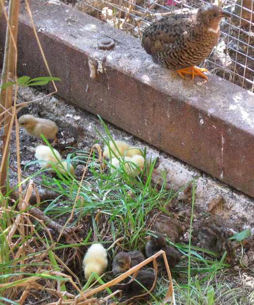 BONSOIR . Comme le demandait ANDRE , j'ais fait quelques photos des jeunes cailleteaux avec leur mère .
